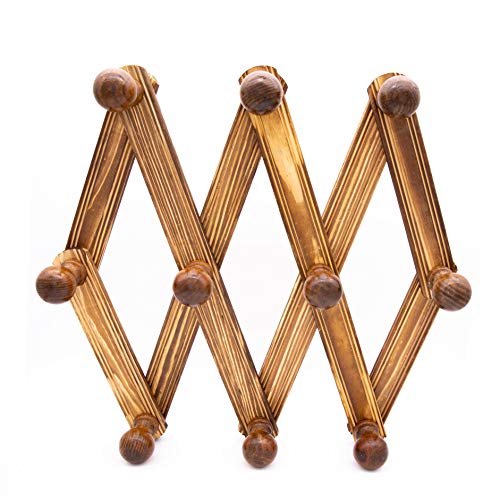 YOYAI 10 Pegs Wooden Hook Wall Mounted Expanding Storage Rack Expandable Wood Hook Peg Rack Accordion Style Coat Hook Hat Rack Hanger Coffee Mug Wall Rack